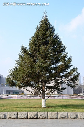 蓝天白云雪原松树手绘插画雪景背景图psd