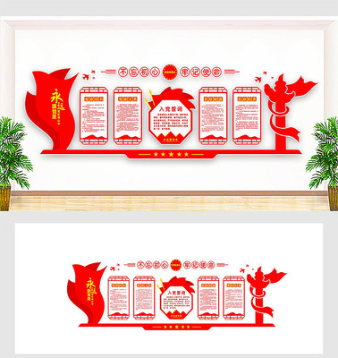竖版廉政文化墙党建廉政文化长廊走廊形象墙