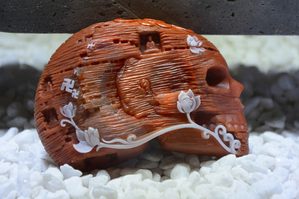 长胡须的骷髅头吸着卷烟黑白矢量雕刻图