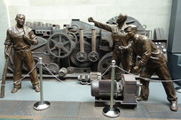 鞍钢展览馆雕塑护厂工人与机器蜡像