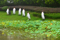 荷塘水景园林企鹅雕塑