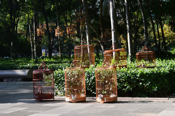 树上挂鸟笼遛鸟
