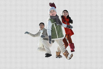 矢量手绘儿童穿厚衣服在寒冷冬季