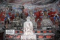 南北朝贴金彩绘石雕佛菩萨三尊像