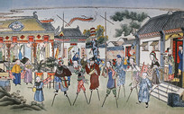 原创手绘踩着高跷跳秧歌的人拿扇子元素