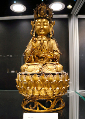 明代(1368-1644年)鎏金铜观音菩萨坐像