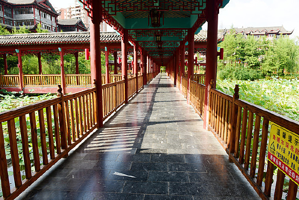古色古香的荷花回廊