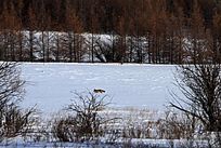 一只黑狐站在田野里眼睛是橙色的高清图片