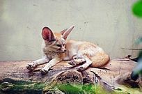 一只狐猴坐在树枝上树枝上有叶子高清图片