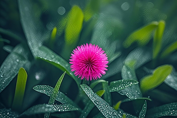 一朵粉红色的花中心呈黄色周围环绕着绿色的