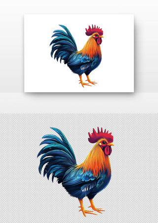 草丛中站着一只公鸡长着红色的梳子高清图片