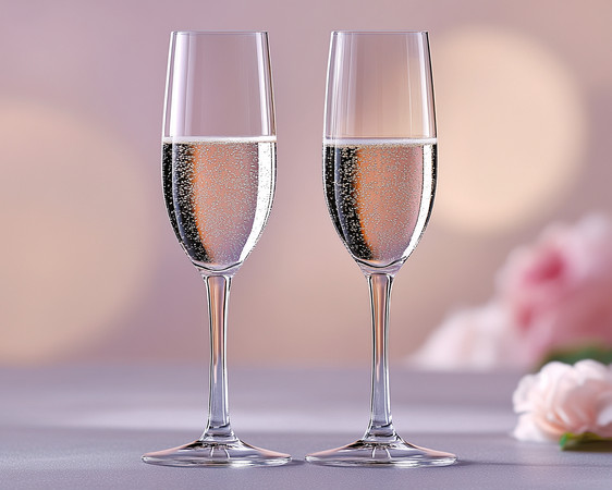 香槟杯中的气泡闪耀在柔和光线下的优雅场景