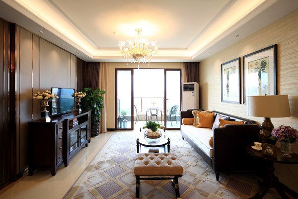 阳光洒进的客厅沙发上有抱枕旁边是绿植