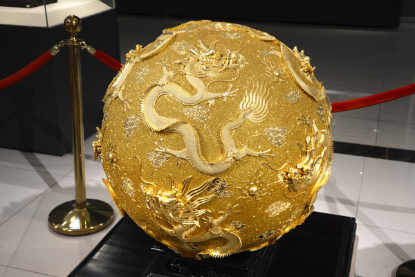 清嘉庆仿雕漆描金双龙戏珠冠架