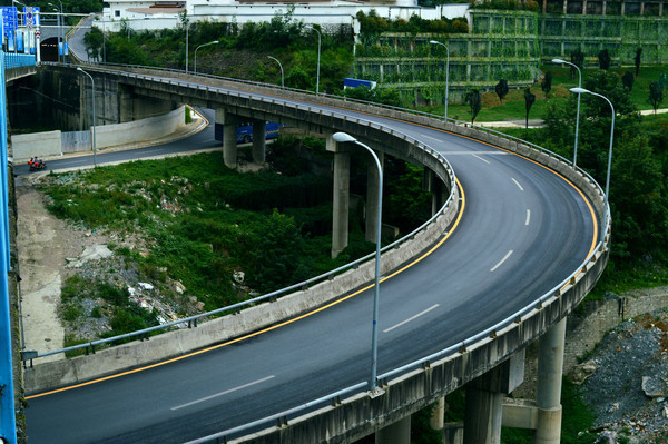 城市夜景立交桥堵车环岛汽车灯拖尾视频
