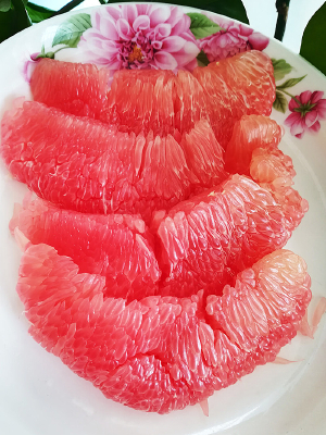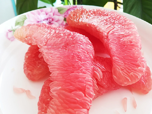 黑盘上有两个葡萄柚上面一片绿色的叶子高清