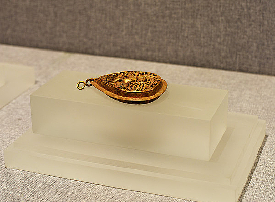 明代梁庄王墓出土青玉镂空荷叶鸳鸯佩饰