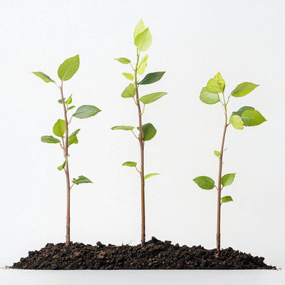 夜晚一片田野里有三棵绿色的树背景是黑色