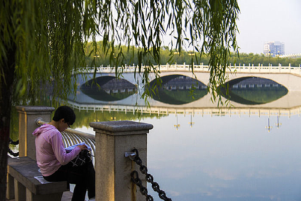 晨读于湖畔