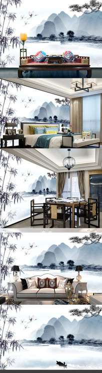 宽幅云雾缭绕的徽派村落和田园牧歌