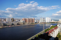鸟瞰襄阳汉江大桥两岸风光全景图