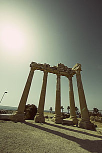 古埃及神庙旁蓝色尼罗河上航行的游轮