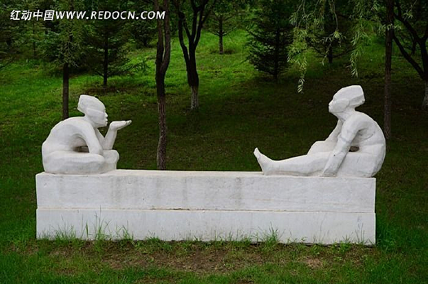 公园闲聊三人雕塑