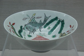 明嘉靖1522-1566年五彩鱼藻纹盖罐