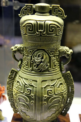 麒麟盖四兽耳活环龙纹扁壶玉雕
