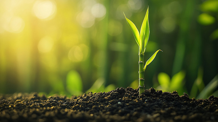 从土壤里长出的小竹苗
